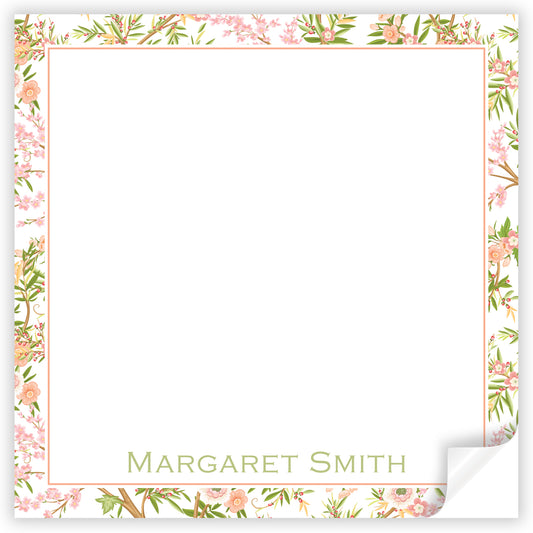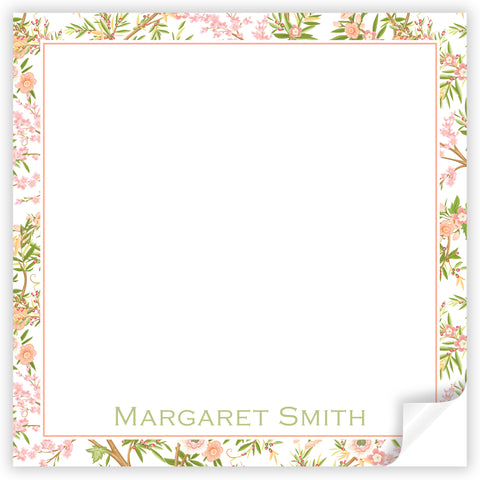pink & orange chinoiserie square notepad