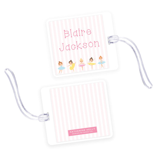 ballerinas square laminated bag tag