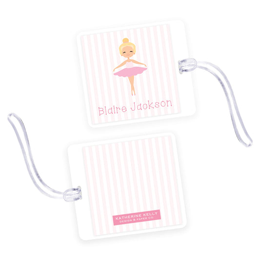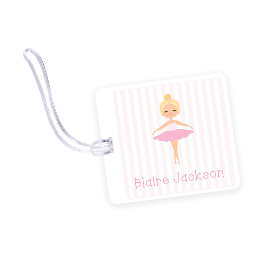 ballerina tutu square laminated bag tag