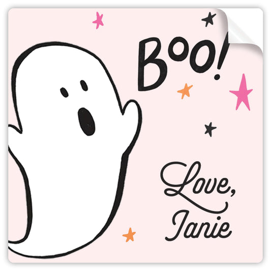 boo! ghost pink halloween sticker