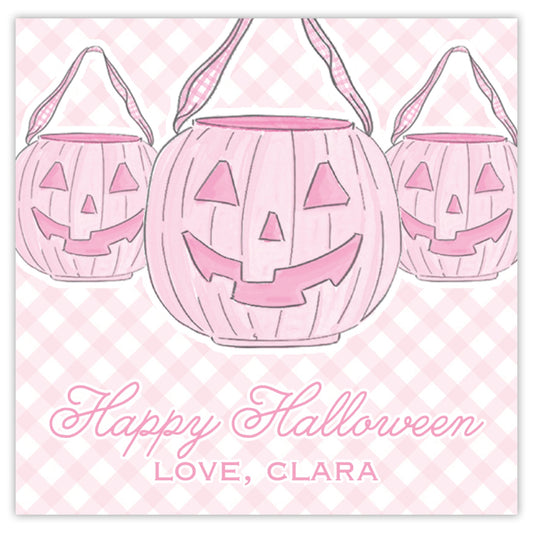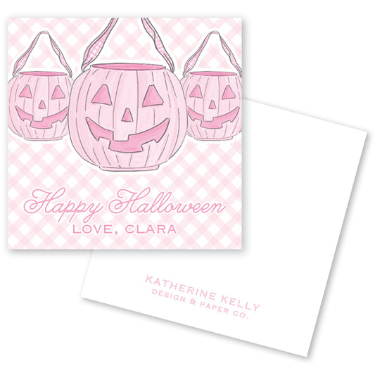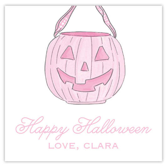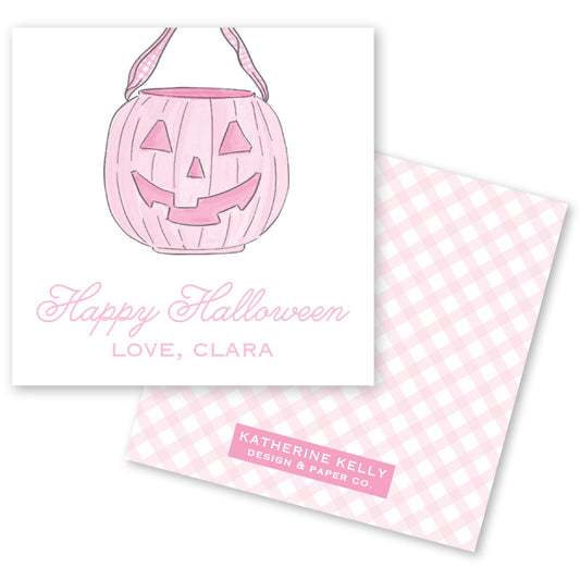 pink pumpkin pail halloween card