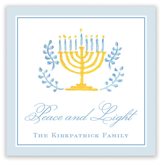 watercolor menorah personalized gift tag