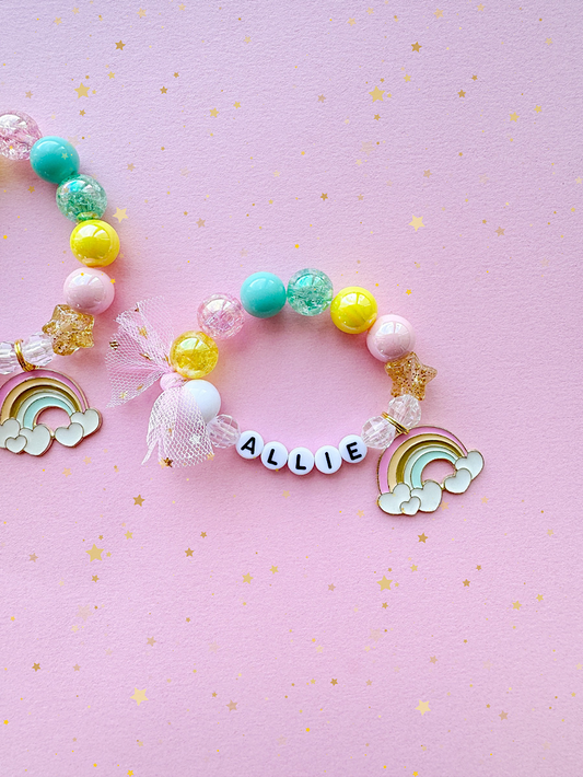Pastel Rainbow Kids Beaded Charm Bracelet