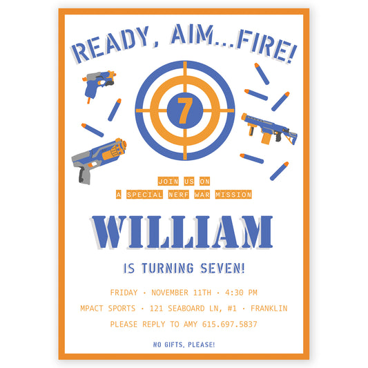 dart gun birthday invitation