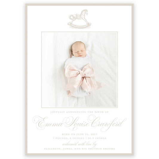 taupe rocking horse birth announcement