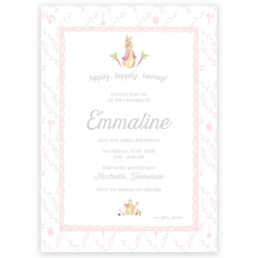 peter rabbit pink trellis party invitation