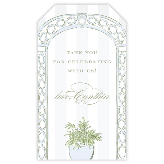 blue trellis party favor tag