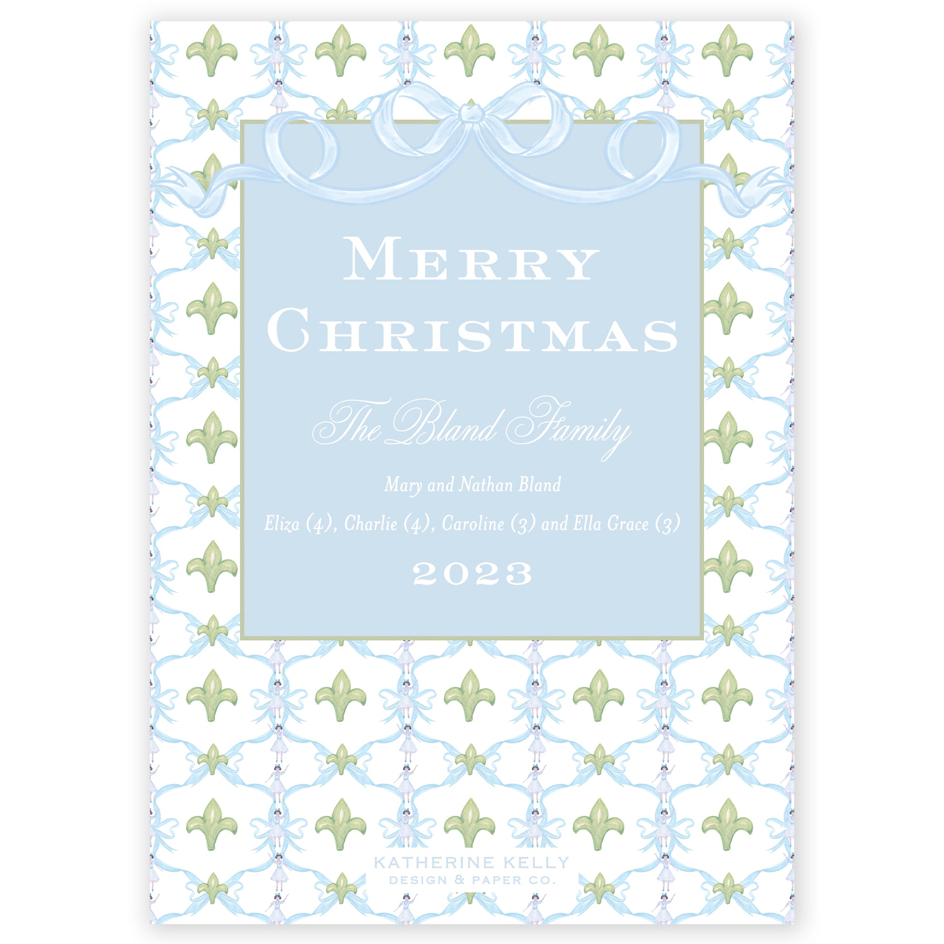 blue garland bow photo holiday card