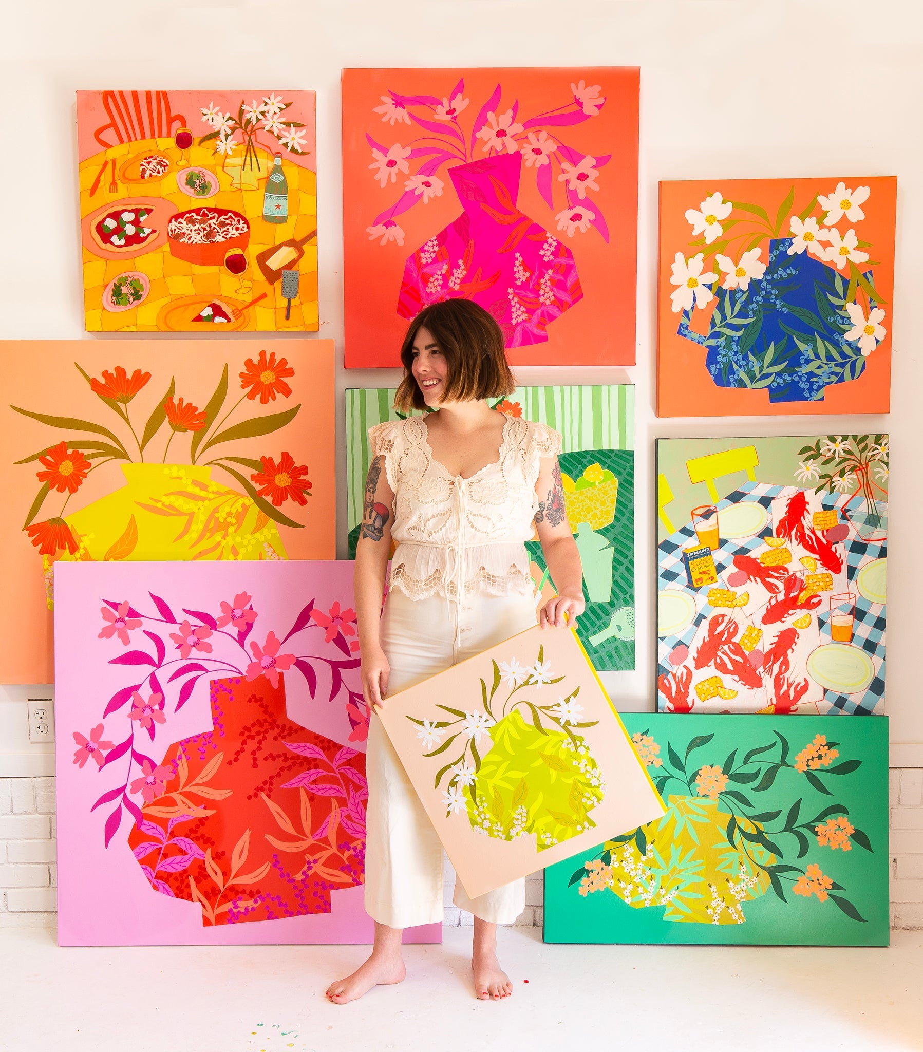 Bailey Schmidt is a painter living and working in Charlotte, North Carolina. She began her artistic career as a printmaker and graphic designer, which has influenced the way she paints today. Her paintings are full of bold color and pattern and highlight her love of florals and interiors. She likes to challenge herself with unexpected color combinations and unconventional pattern mixing while keeping a critical eye on composition and visual balance. She wants her work to be known for being cheerful and bringing joy to a space.